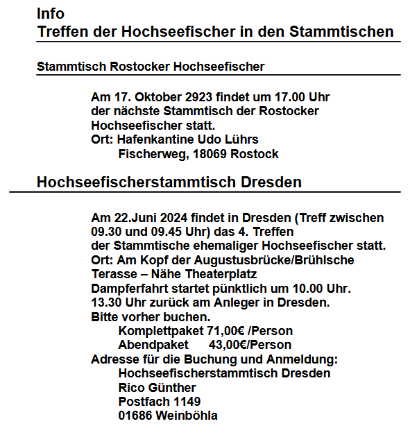 Termine Warener Stammtisch der Hochseefischer